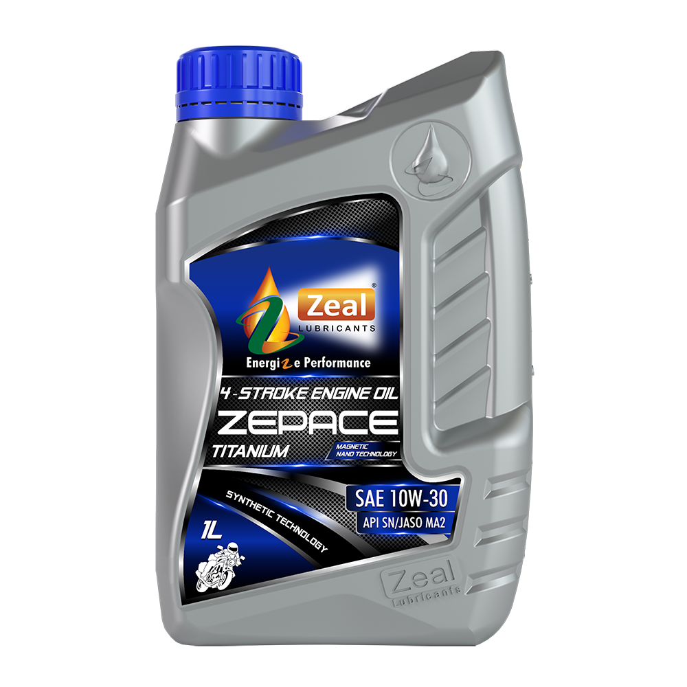 Zeal Zepace Titanium 4T 10W30 SN is designed with high quality synthetic base stocks and advanced technology additive system to provide high level of protection and performance. It works harder than other conventional motor oils by continuously preventing dirt and sludge build-up and reduces engine noise. This product meets the requirements of most motorcycle manufacturers and is suitable for use in 4 stroke gasoline engines, naturally aspirated or turbo charged engines, operating in all round seasons and adapted to vehicles equipped with catalytic converters running on unleaded fuels